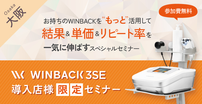 | 内容 | 【WINBACK 3SE導入サロン様限定】 WINBACK 3SEを"もっと”使いこなす実技セミナー 3SEの魅力をもっと引き出して、「結果・単価・リピート」を一気に伸ばすための特別セミナーを開催します。 ↓こんな方におすすめです↓ ・WINBACK 3SEを上手く活用できいない ・オプションパーツを使いこなしたい ・中々思うような結果がだせていない ・基礎から応用まで幅広く知識を得たい ・メニュー展開に悩んでいる ・新しい提案をしたい などの悩みがあるサロン様へ向けて、【3SEの成果を高める考え方&活用テクニック】を実践形式で解説! 【セミナー内容】 ◉WINBACKとはなにか! 今更聞けないCET・RETの違いと使い分け ◉魔法のカウンセリングツールをマスター! ◉120分3万円を実現! 単価アップ・顧客満足度向上を目指そう! ◉午前の座学をもとに実技で実践! 悩み解決!(ディスカッション) ______________ このセミナーに参加すると、、 ◉自信を持ってWINBACKを活用できるようになる ◉お客様満足度・リピート率の向上 ◉サロン・治療院でのメニュー展開の幅が広がる ◉現場での課題をその場で解決できる ______________ 【先着順】 ご予約は先着順です。 参加をご希望の方は、お早めに申込みください。 |
