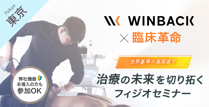 | 内容 | <対象機器> WINBACKシリーズ <内容> 世界のトップアスリートもケアやトレーニングに選ぶWINBACK。 今回は、治療分野でのWINBACK活用方法についてお伝えします。 『このような方必見です』 ・普段の治療に新しい施術や考え方を取り入れたい ・WINBACKを使った自費診療を伸ばしたい ・これから治療でWINBACKを導入したいと思っている ■座学 ・貼るだけWINBACK特許取得 ・WINBACK作用機序を徹底解説 ~高周波とミトコンドリア、ATP産生の関係~ ■デモンストレーション ・Re-fas×WINBACKで施術効果を爆上げする方法 ・最新機種BACK4 AX、BACK3 AXをご紹介 →モード別プローブの動かし方やワンポイントをレクチャー ■実技 ・デモンストレーション内容の習得 ・参加者からの希望各症例への適用方法 |