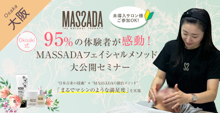 | 内容 | 導入サロンの皆さま、大変お待たせいたしました! 95%の体験者を感動させたMASSADAフェイシャルメソッド大公開セミナーを開催します。 先生方のサロンでは、ハンド技術による「結果出し」に自信を持てていますか? MASSADAのフェイシャルは、 “日本古来の技術” と “MASSADA独自のメソッド” を融合。 「まるでマシンのような満足度」と、全国のサロン様から驚きと高い評価をいただいております。 今回は、95%の体験者を感動させた手技の持ち主、沖 咲先生が講師をつとめ Okisaki式 MASSADAフェイシャルメソッドを余すことなく伝授いただきます。 ▼こんなサロン様にこそ、おすすめです ◯ MASSADA導入サロン様 → 自己流になっていませんか?技術の再確認で、リピート率アップへ! ◯ 店販のみ取り扱い中のサロン様 → 商品力を最大限に引き出す施術を知ることで、店販トークの説得力が変わります。 ◯ 導入を検討しているサロン様 → 「他店と差別化できるハンド技術」を、ぜひ間近で体感してください。 当日は技術デモンストレーションを中心に進行しますが、 成分理論やクロージングトークなど、日々のサロンワークでの疑問もその場で解決いただけます。 機械に頼らず、 “自らの手で顧客を感動させる技術” を手に入れませんか? 皆さまのご参加を心よりお待ちしております。 ■セミナー技術講師 沖 咲 鍼美サロンEMAI オーナー 【国家資格】 あん摩マッサージ指圧師 はり師 きゅう師 医療リンパドレナージセラピスト 美容師免許 【資 格】 AEAインターナショナルエステティシャン 育児セラピスト ベビーマッサージインストラクター |