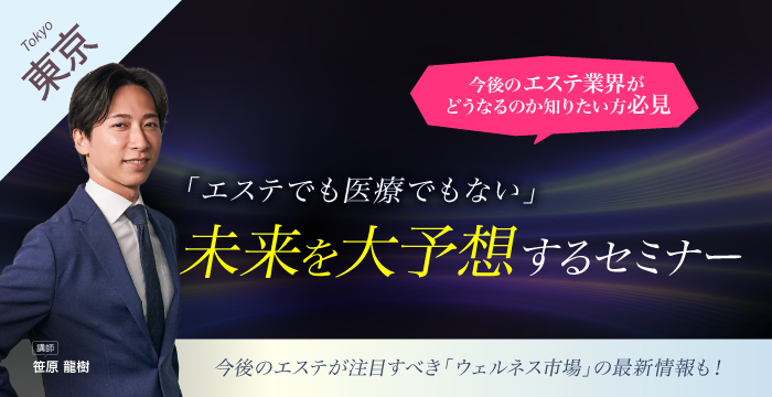 | 内容 | ■内容 美容医療と差別化するために、今後のエステが注目すべき「ウェルネス市場」の最新情報をお伝えします。 いま、ニーズが増えてきている、”睡眠”や”リカバリー”で人間が本来持っているポテンシャルを引き出す方法や、その理論も徹底解説! さらに、お持ちの美容機器を最大限活用するために「なぜ効果が出るのか?」を理論と体験でしっかりお伝えします! ◉今後のエステ業界がどうなるのか知りたい ◉機器の仕組みを学びたい ◉導入前に体験して納得したい そんな方にぴったりの1日型セミナーです。 <午前> 今後のエステ業界や、各機器の理論を専門講師がわかりやすく解説 <午後> 複数の機器を体験&比較できる体験会 <当日体験できる機器> 高周波(WINBACK) ピーリング(LA FONTAINE) 体験会からのご参加もOK! 導入検討中の方も、とりあえず情報収集をしたい方も大歓迎です♪ |